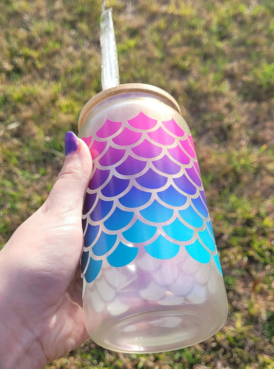 Mermaid Scale Shimmer 16oz Libbey Glass Can