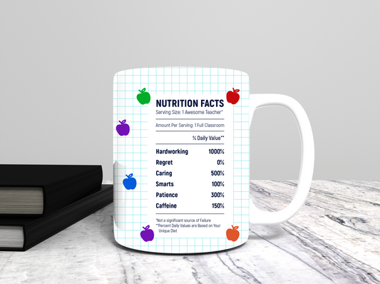 Teach Love Inspire Teacher Nutritional Facts 15oz Mug