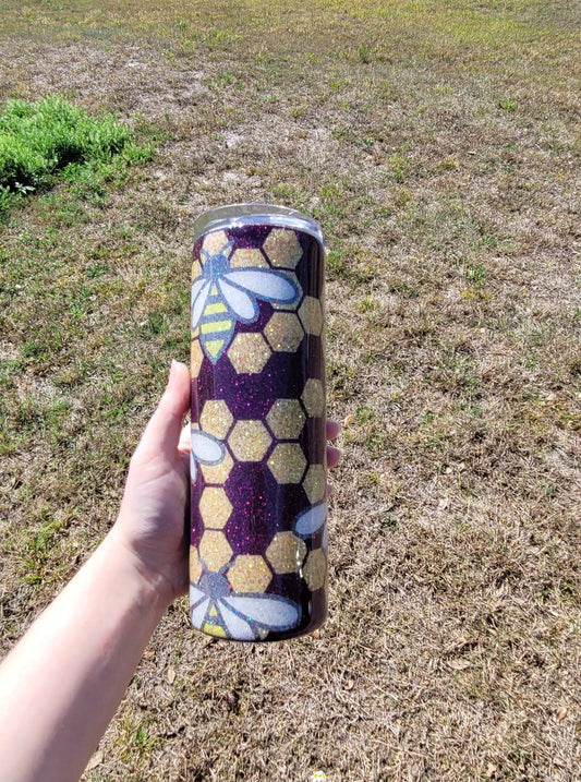 Bee Honeycomb Stainless Steel Glitter Tumbler