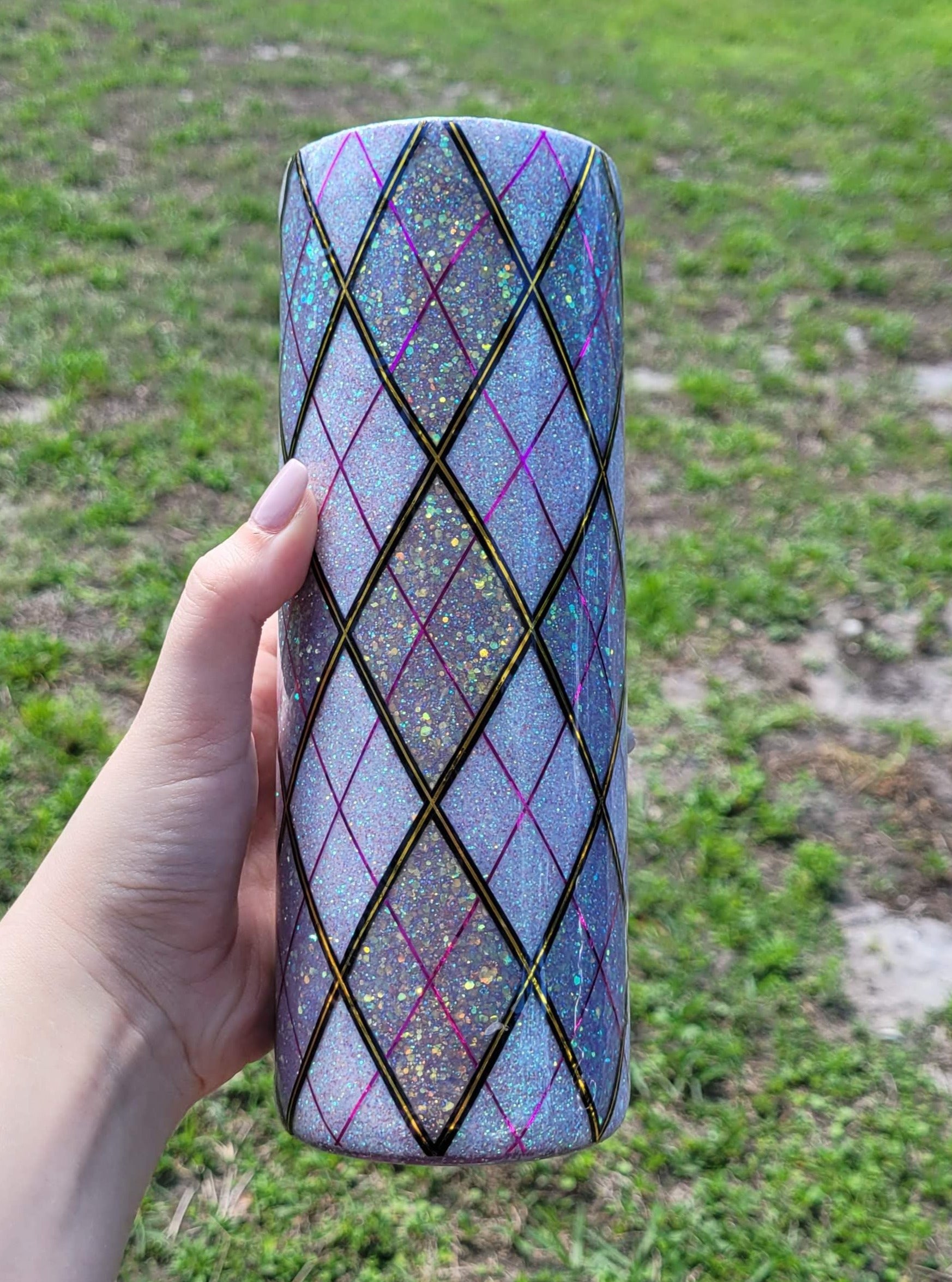 Handmade double walled skinny stainless steel tumbler keeps your drink hot or cold. Made using FDA complaint epoxy, that gives your tumbler a final durable shiny glass like finish. Your tumbler comes with a lid and straw.
