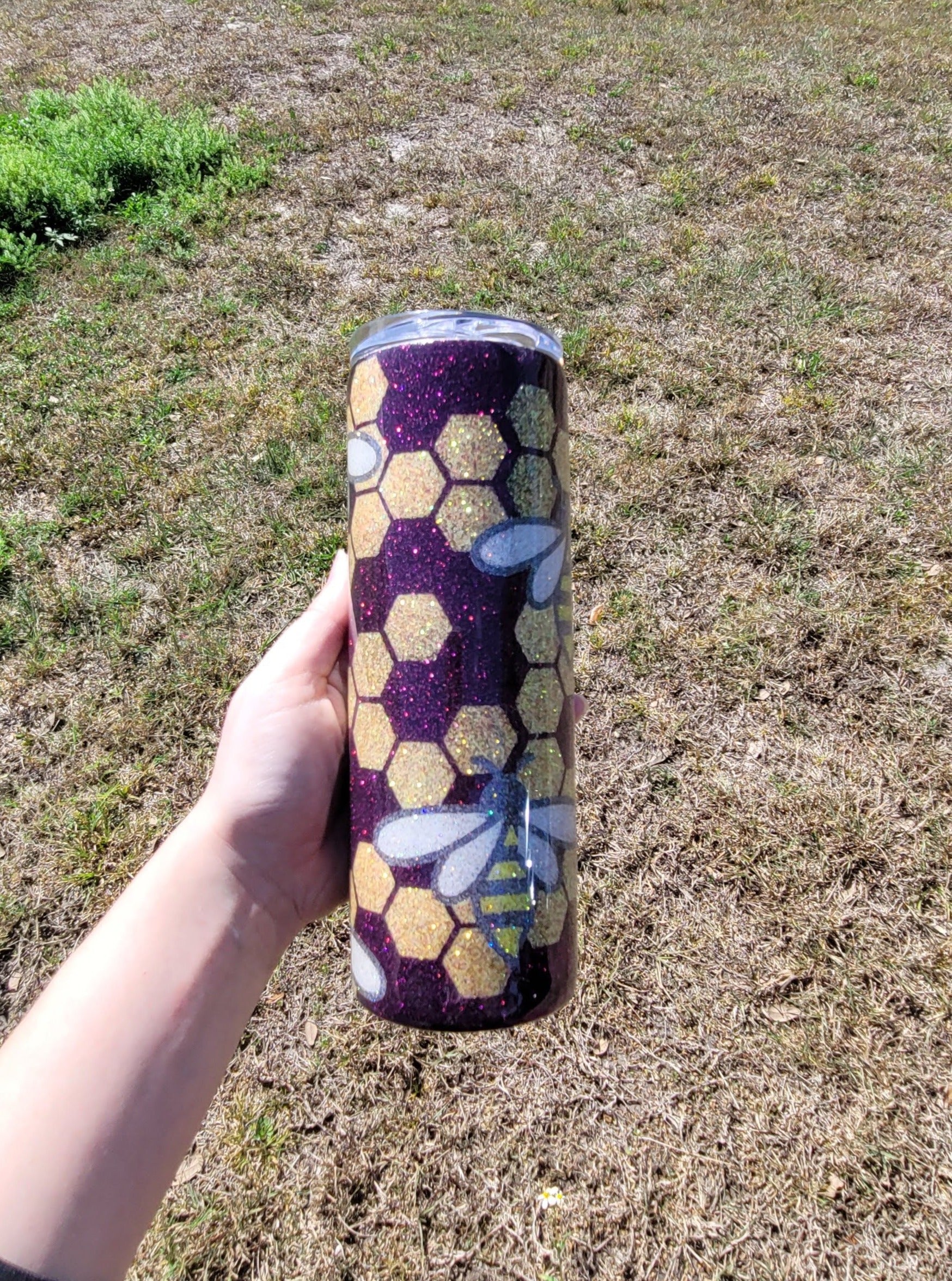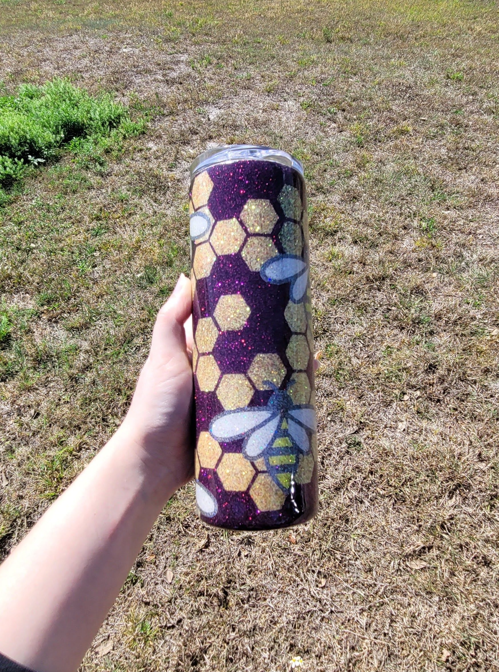 Our Bee Honeycomb Stainless Steel Glitter Tumbler is crafted with a high-grade, stainless steel that is double-walled and vacuum-insulated. The outer surface is imprinted with an intricate bee honeycomb design and finished in an eye-catching glitter. Insulated and stylish, this tumbler will keep your drinks at the perfect temperature while adding a touch of sparkle to any occasion.