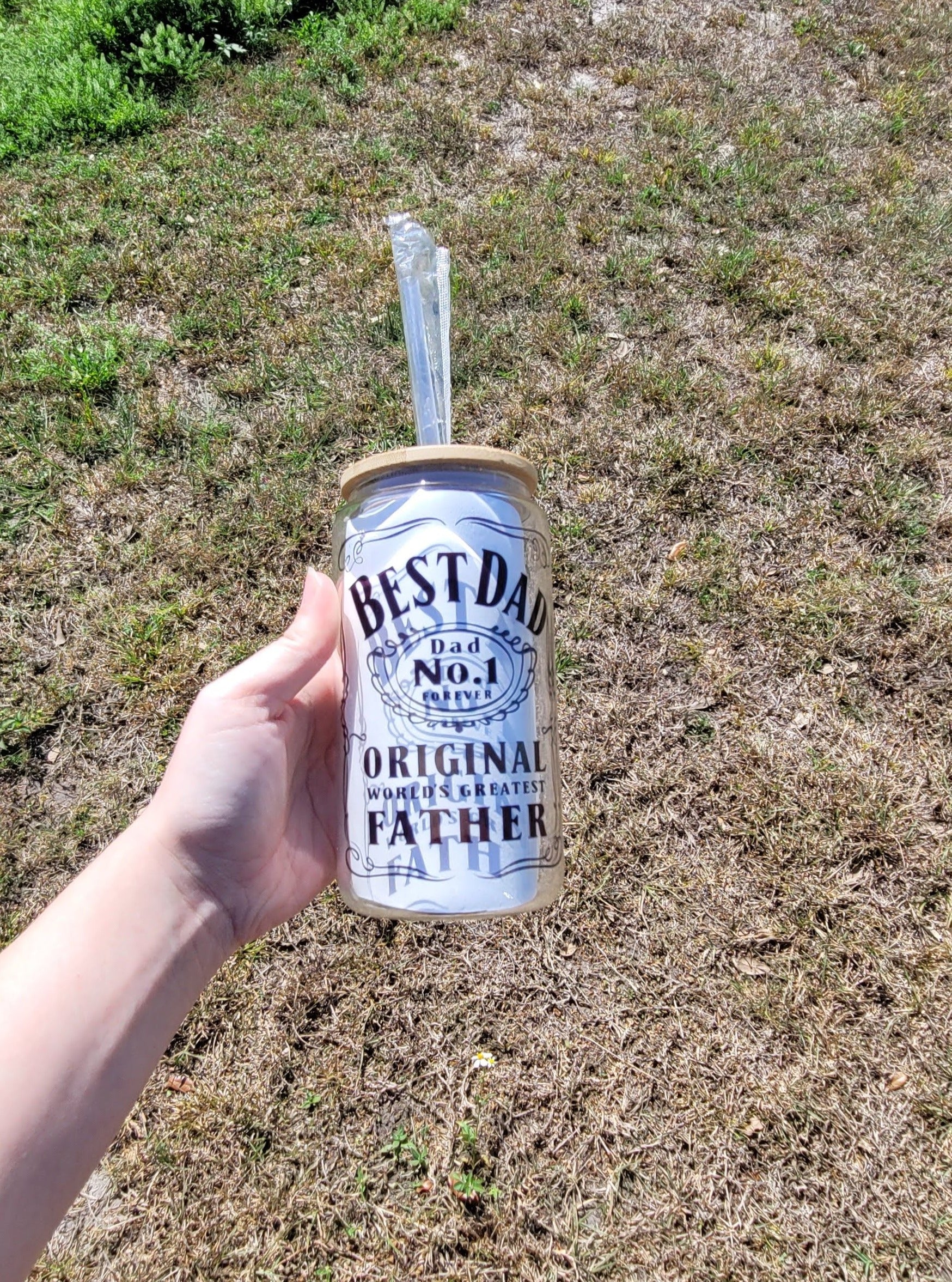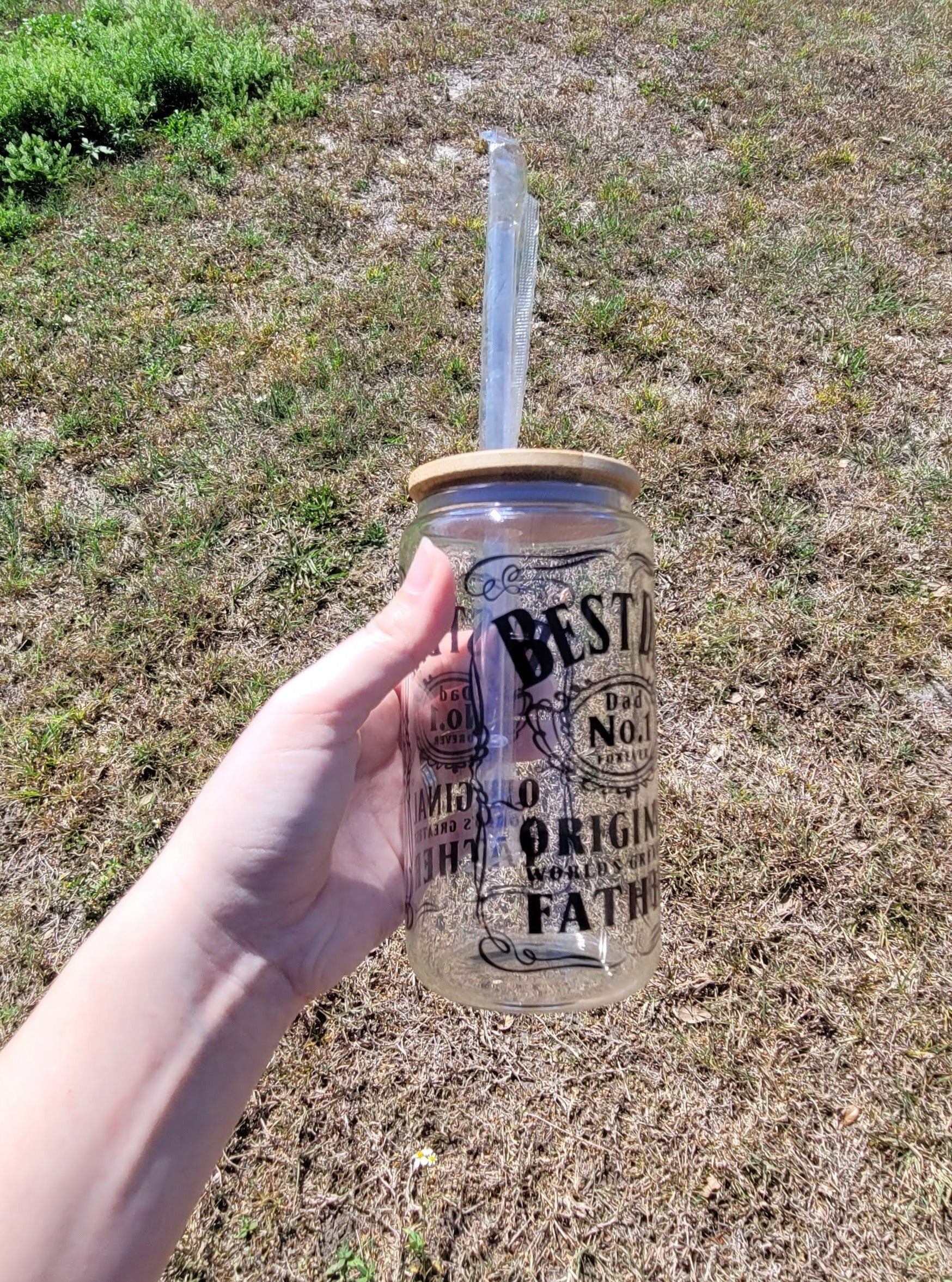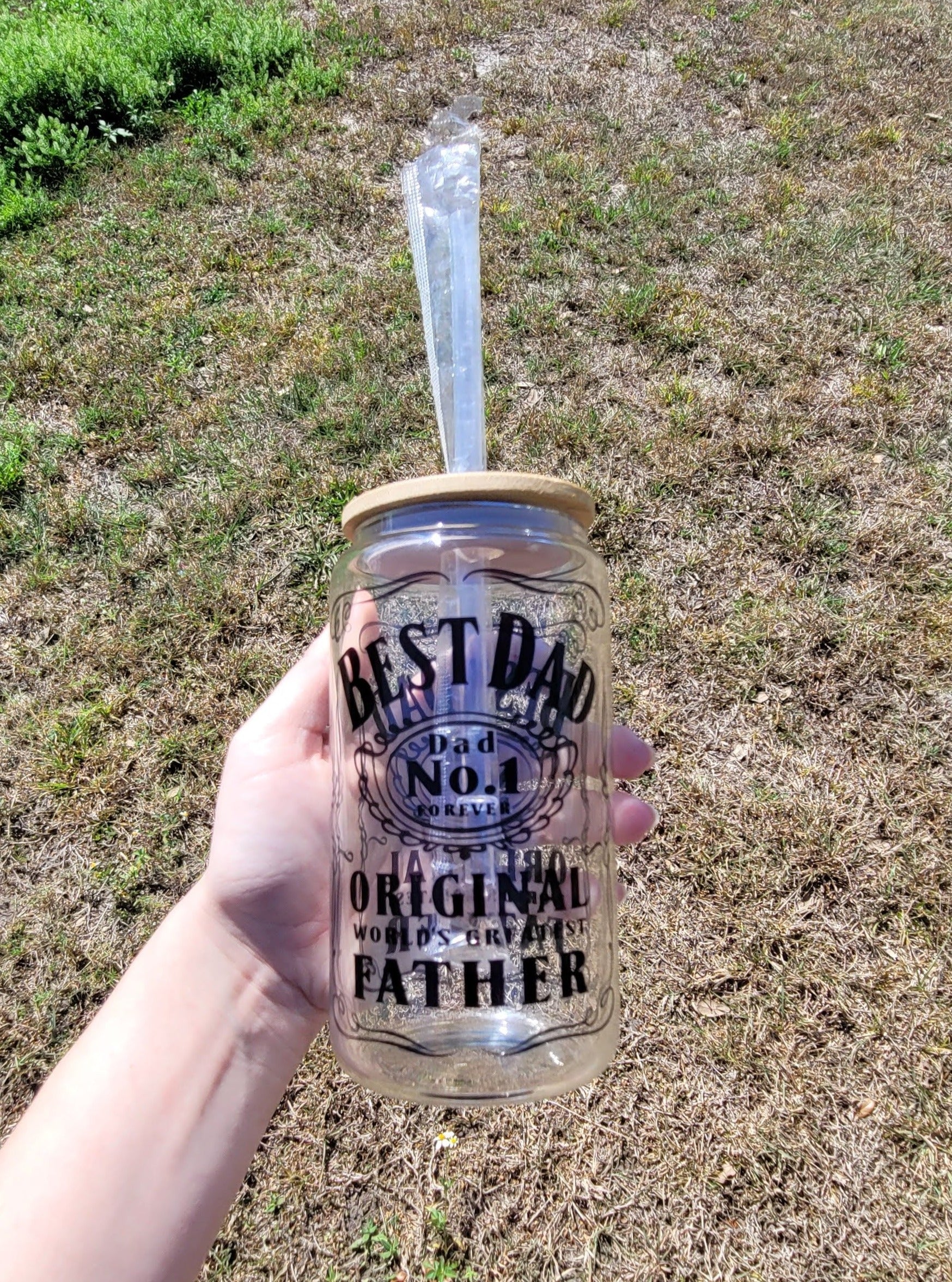 This Glass Can is inspired by whiskey, creating the perfect vessel to honor the best of dads. Complete with Bamboo lid and reusable plastic straw.