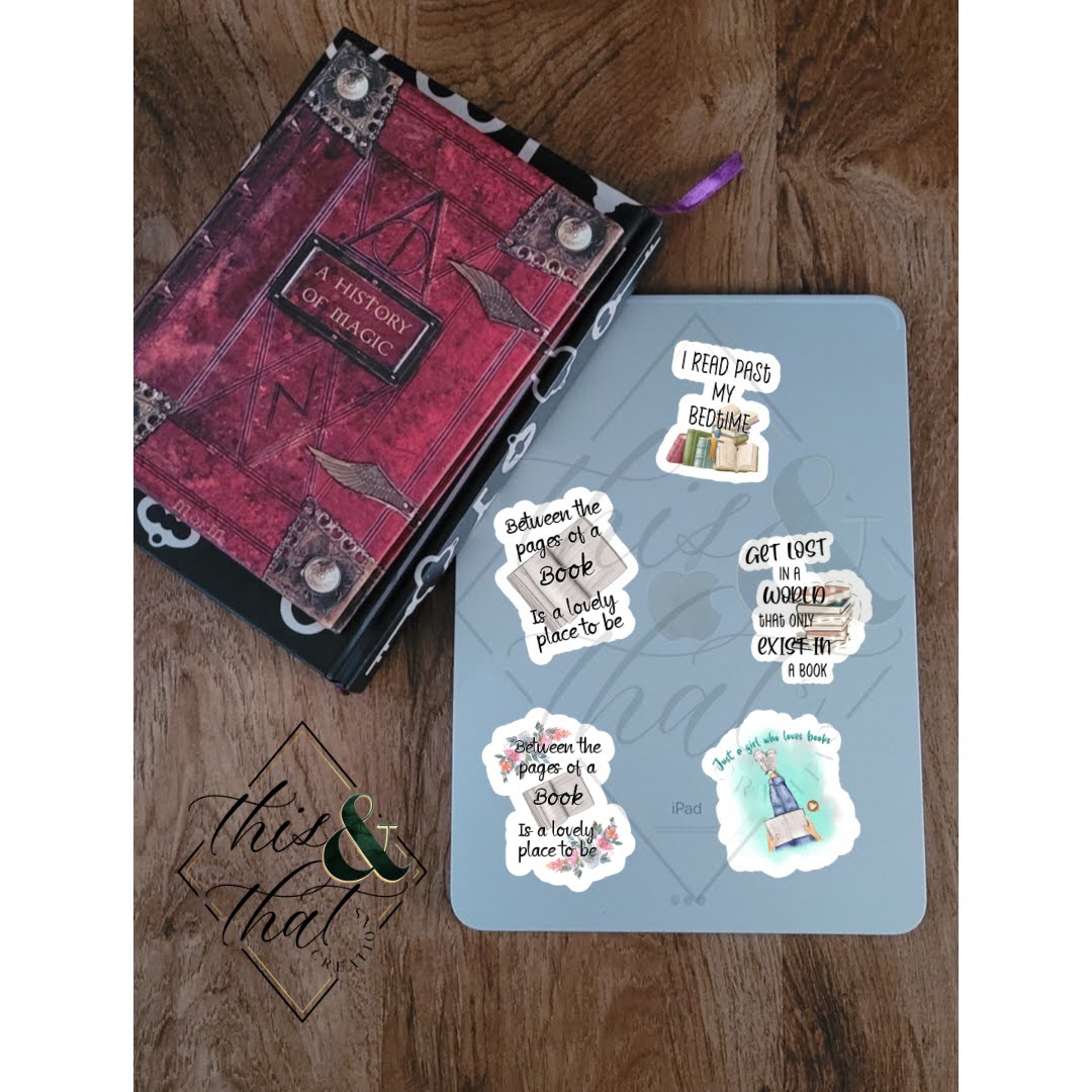 Decorate your kindle or tablet with these fun reading bookish inspired stickers. Perfect for the Book lover in your life. All stickers are 2" at largest side.