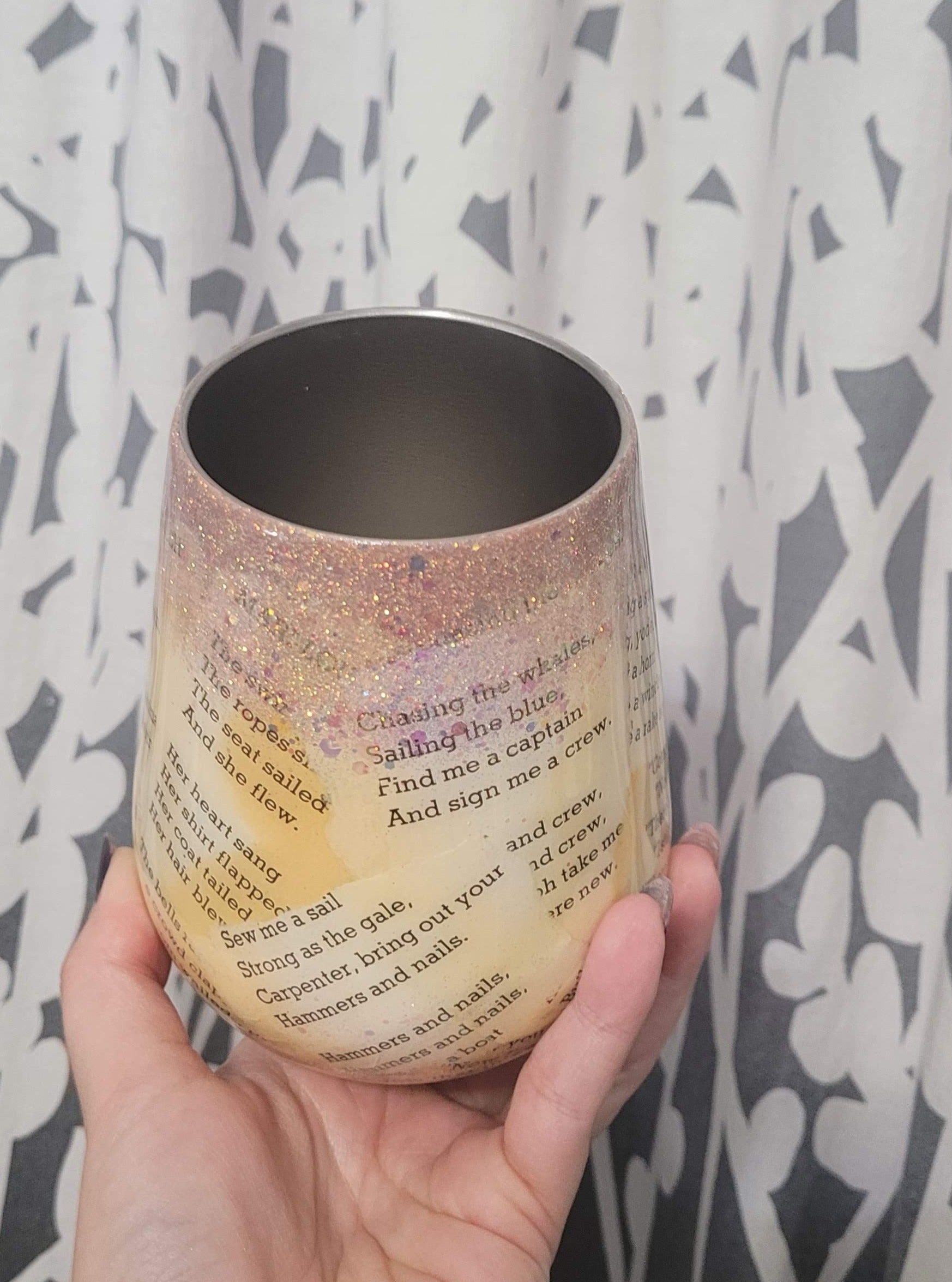 Handmade double walled skinny stainless steel tumbler keeps your drink hot or cold. Made using FDA complaint epoxy, that gives your tumbler a final durable shiny glass like finish. Your tumbler comes with a lid and straw.
