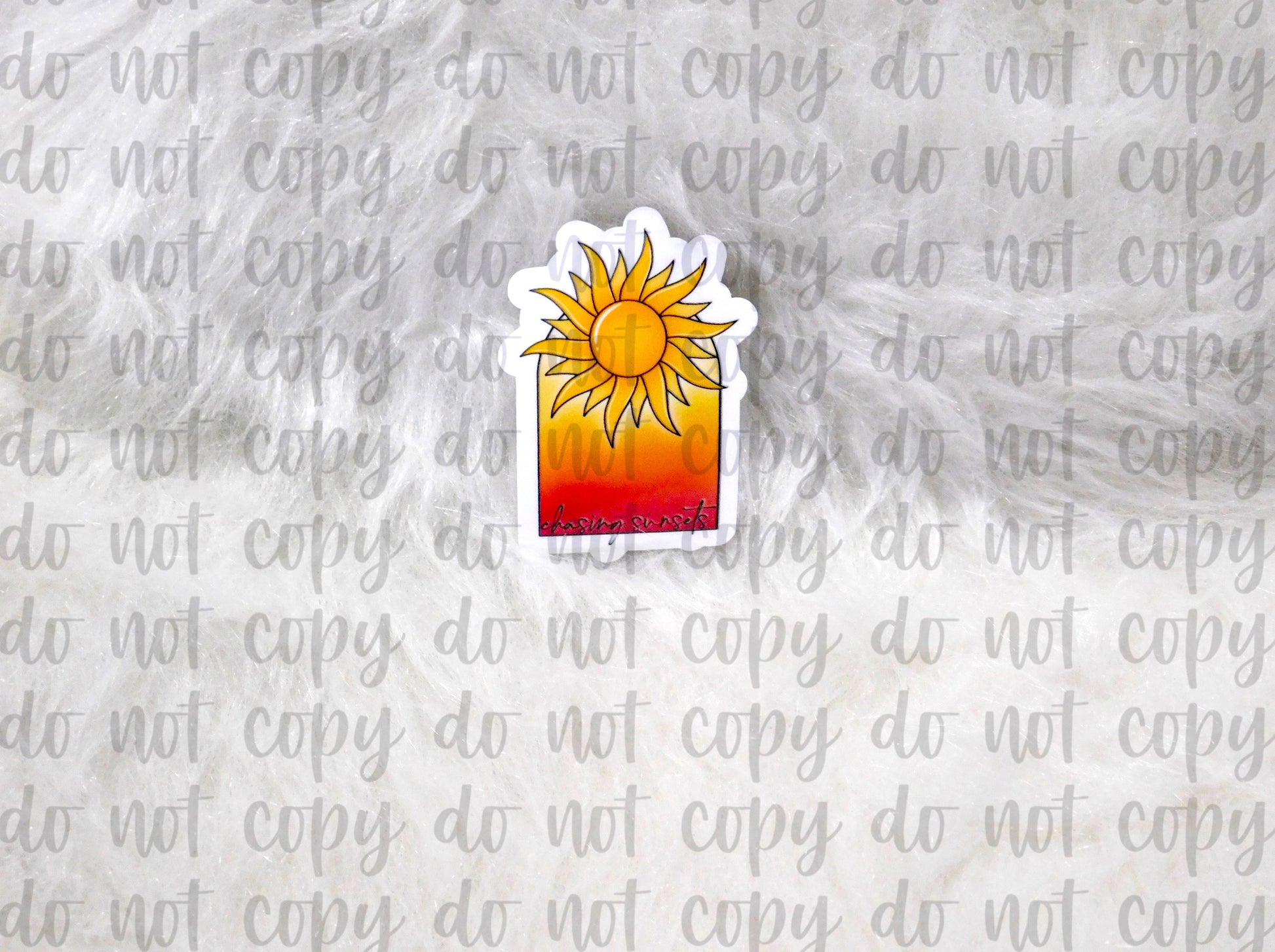 Add a little sunshine to your life with the Chasing Sunsets Sun Sticker. This 2.5" sticker is perfect for any surface and features a playful design that will brighten your day. Spread some good vibes with this quirky sticker.