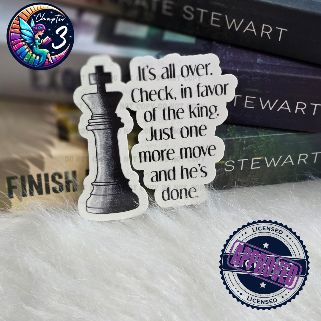 Checkmate! Show your support for the king with this 2.5" sticker featuring the final move. Perfect for chess lovers and loyal Tobias subjects alike.