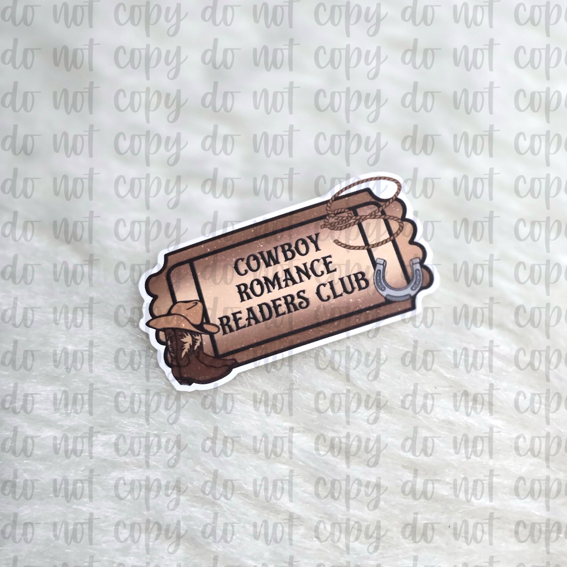 Giddy up and join the Cowboy Romance Readers Club! This unique book club sticker measures 2.5" at its widest point and is perfect for fans of steamy cowboy romance. Unleash your wild side and saddle up with us for a fun and flirty literary adventure.