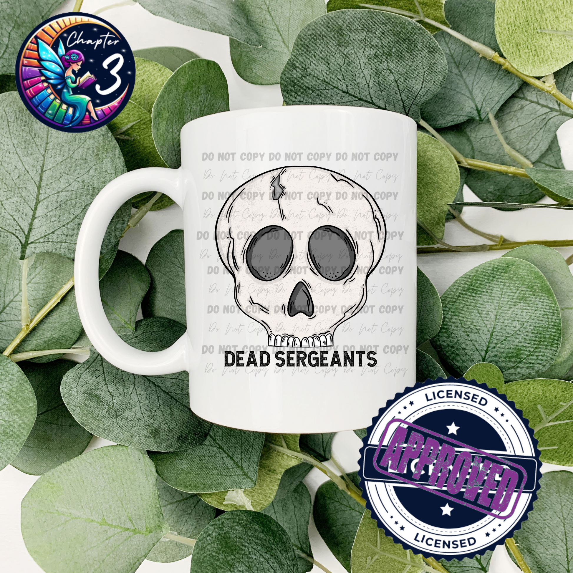 "Sip your morning coffee from the Dead Sergeants Mug, inspired by the novel "Drive" by Kate Stewart. This 15oz mug also doubles as a conversation starter with its quirky design. Join the Dead Sergeants Band and The Bittersweet Symphony craze with this unique mug!"