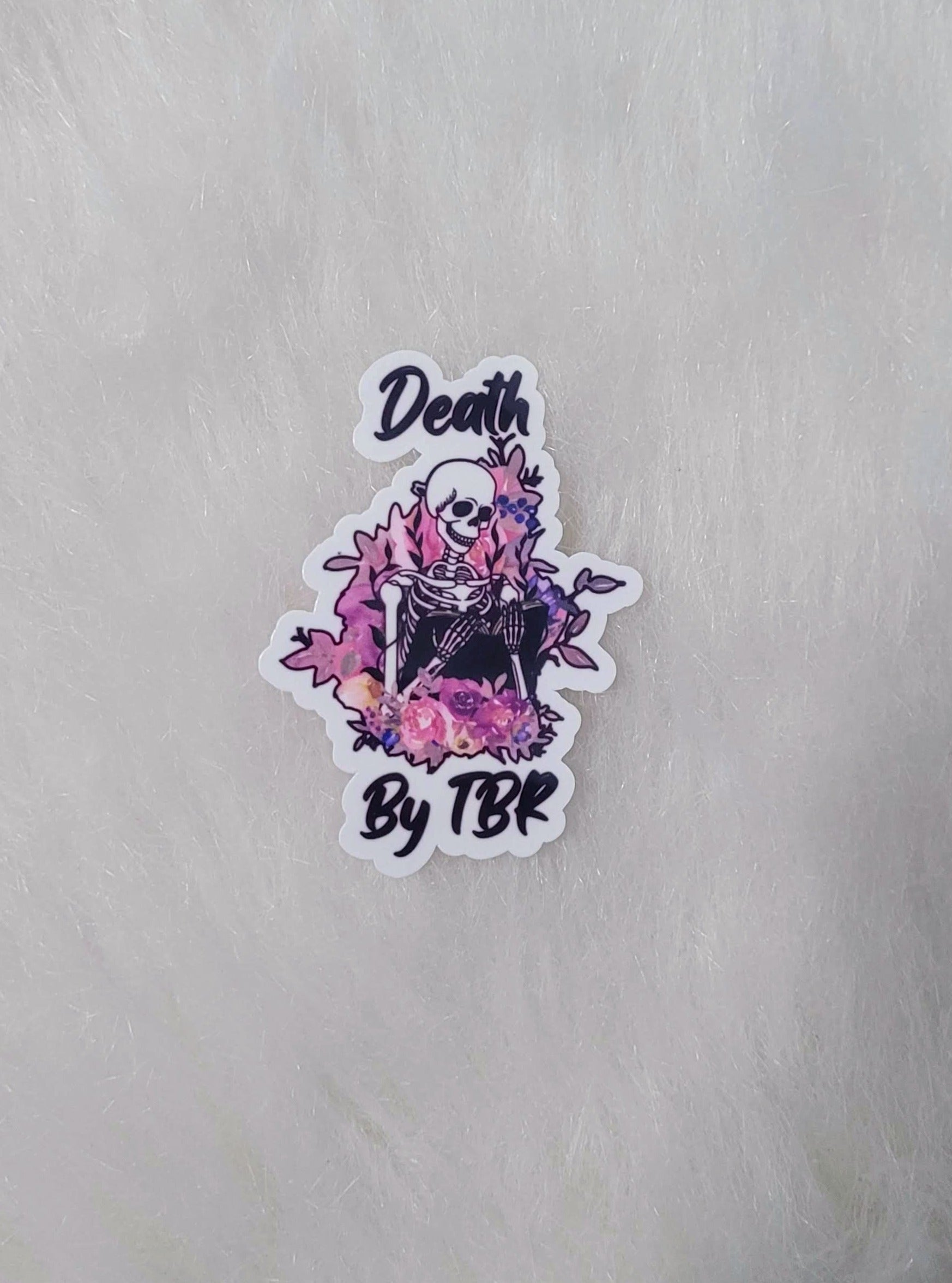 Measuring 2.5" at the widest side, this Bookish Skeleton Sticker 'Death By TBR' is an excellent accessory for any discerning reader.
