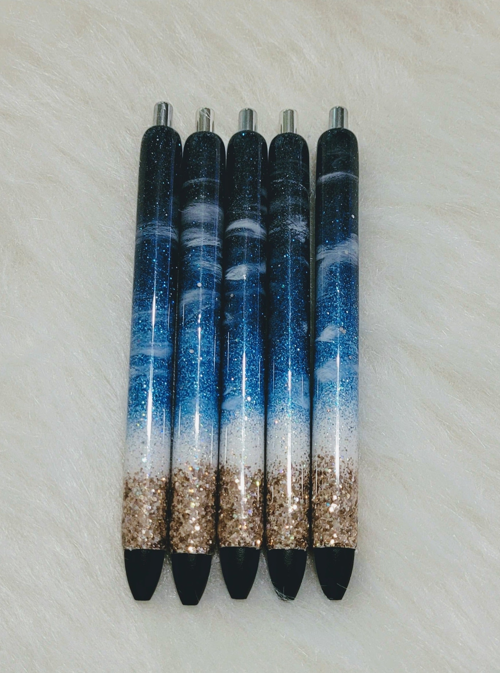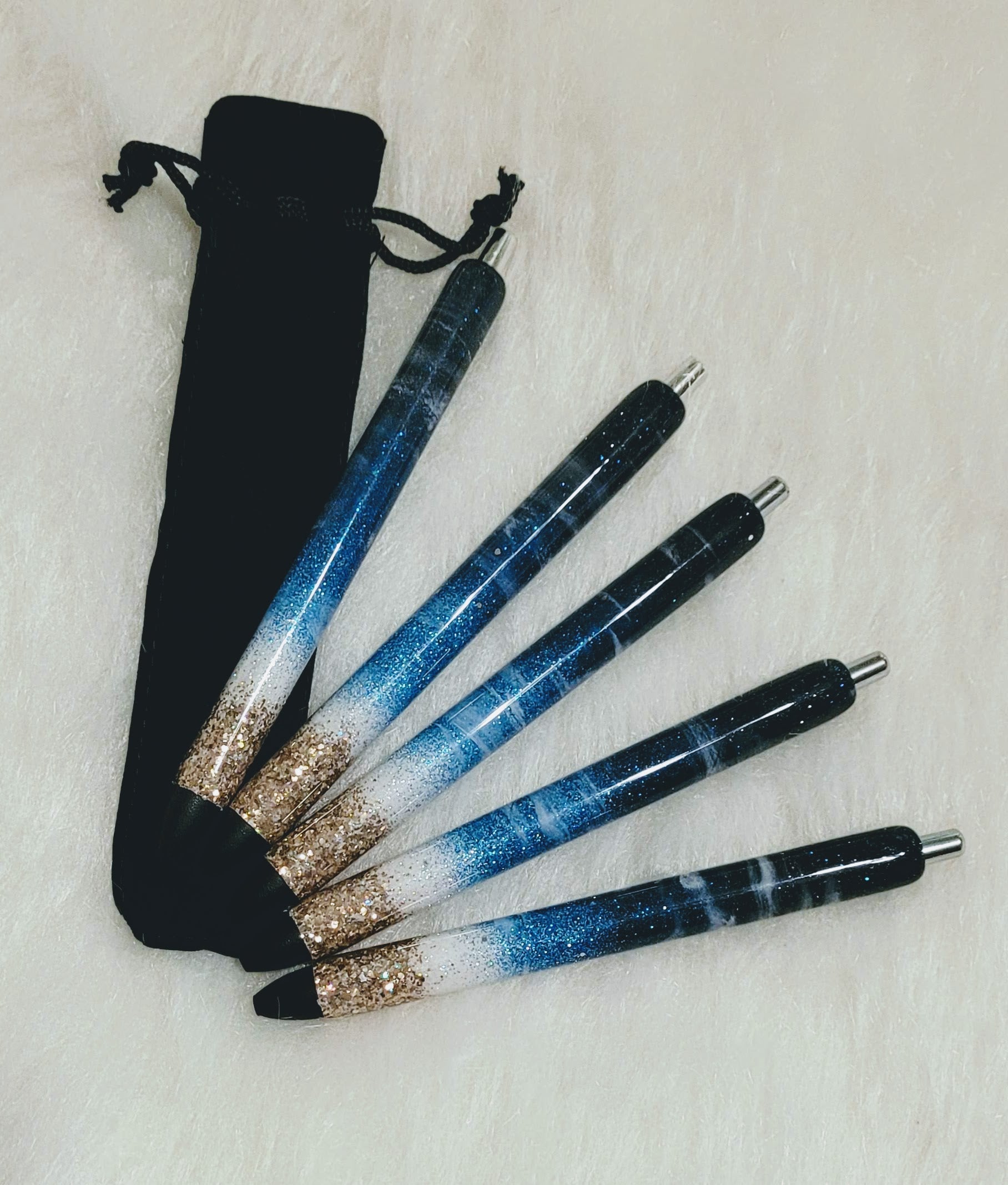 Ideal for beach lovers, these exquisite deep ocean beach refillable glitter gel pens can be personalized with your initials, date, profession, or a saying in a font and color of your preference. Each pen also comes with a velvet satchel great for gifting.