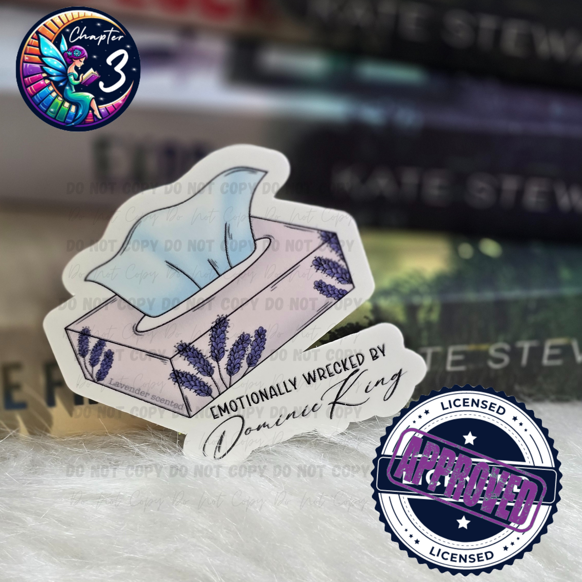 Unleash your emotions with the Emotionally Wrecked by Dominic King sticker. Measuring 2.5" at its widest point, this sticker is perfect for adding a touch of love to your belongings. Wear your feelings on your sleeve (or laptop) with this Ravenhood inspired sticker.