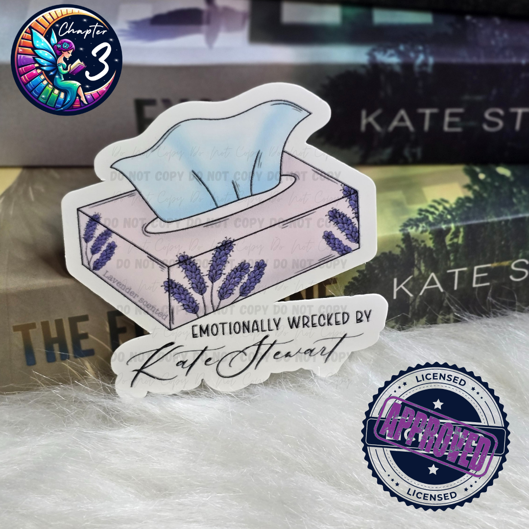 Express your love for Kate Stewart (or your own emotional state) with the "Emotionally Wrecked By Kate Stewart" sticker. Measuring at 2.5" at its widest point, this quirky sticker is perfect for adding a touch of humor to your possessions. Show off your love for word play and humor with this sticker!