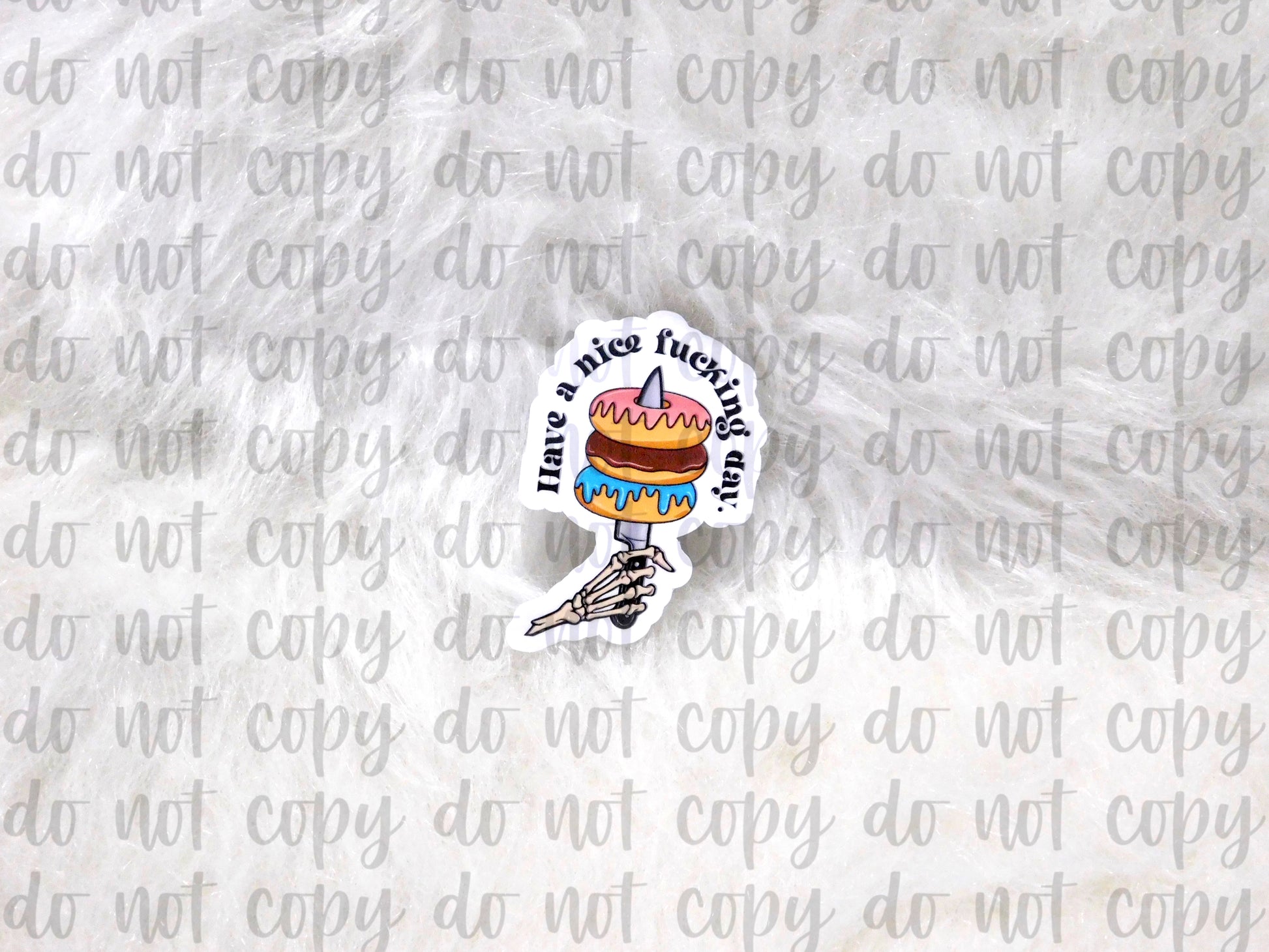 Spread good vibes with the Have a Nice F*ing Day Sticker. This 2.5" sticker adds a touch of humor to any surface, showing off your quirky personality. Easy to apply and remove, it's the perfect addition to your collection of fun and playful accessories. Just remember, it's all about having a nice f*ing day!