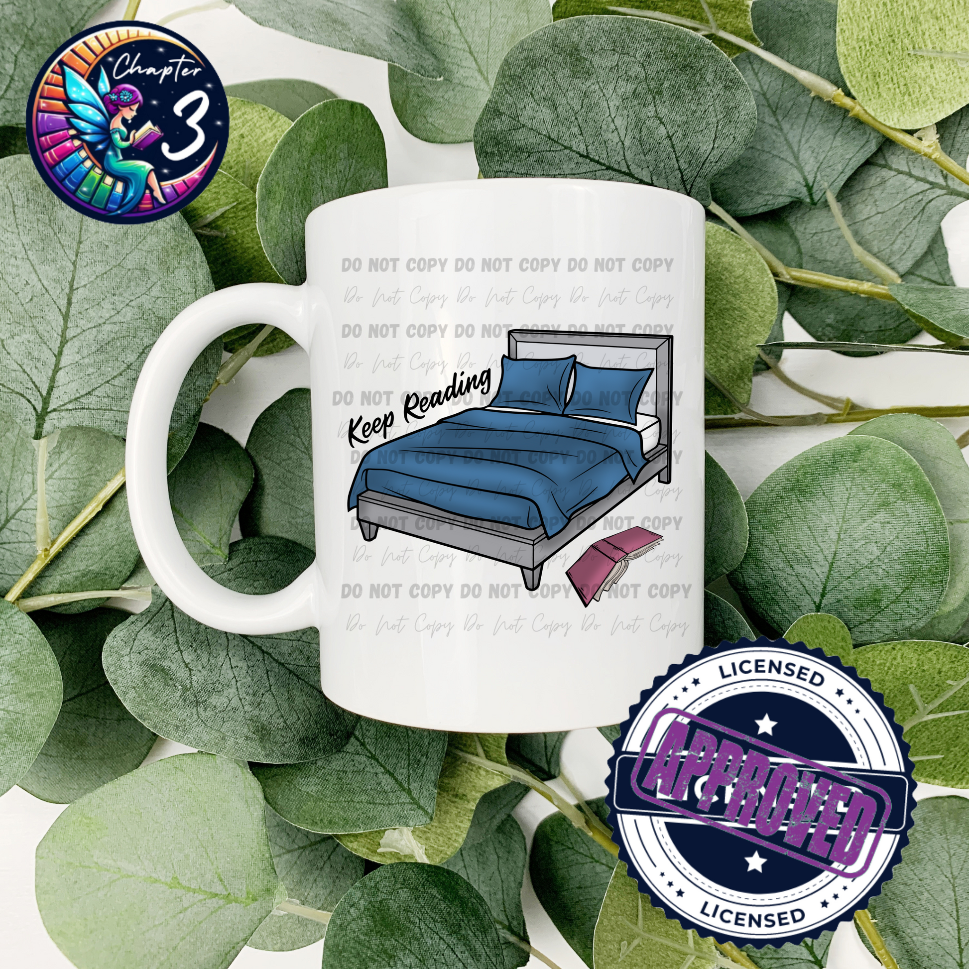 Indulge in your love for books with the Keep Reading 15oz Mug. A perfect companion for any book lover, this mug is inspired by Kate Stewart's "The Ravenhood" series. Enjoy your favorite beverage in style with this spicy and fun mug.