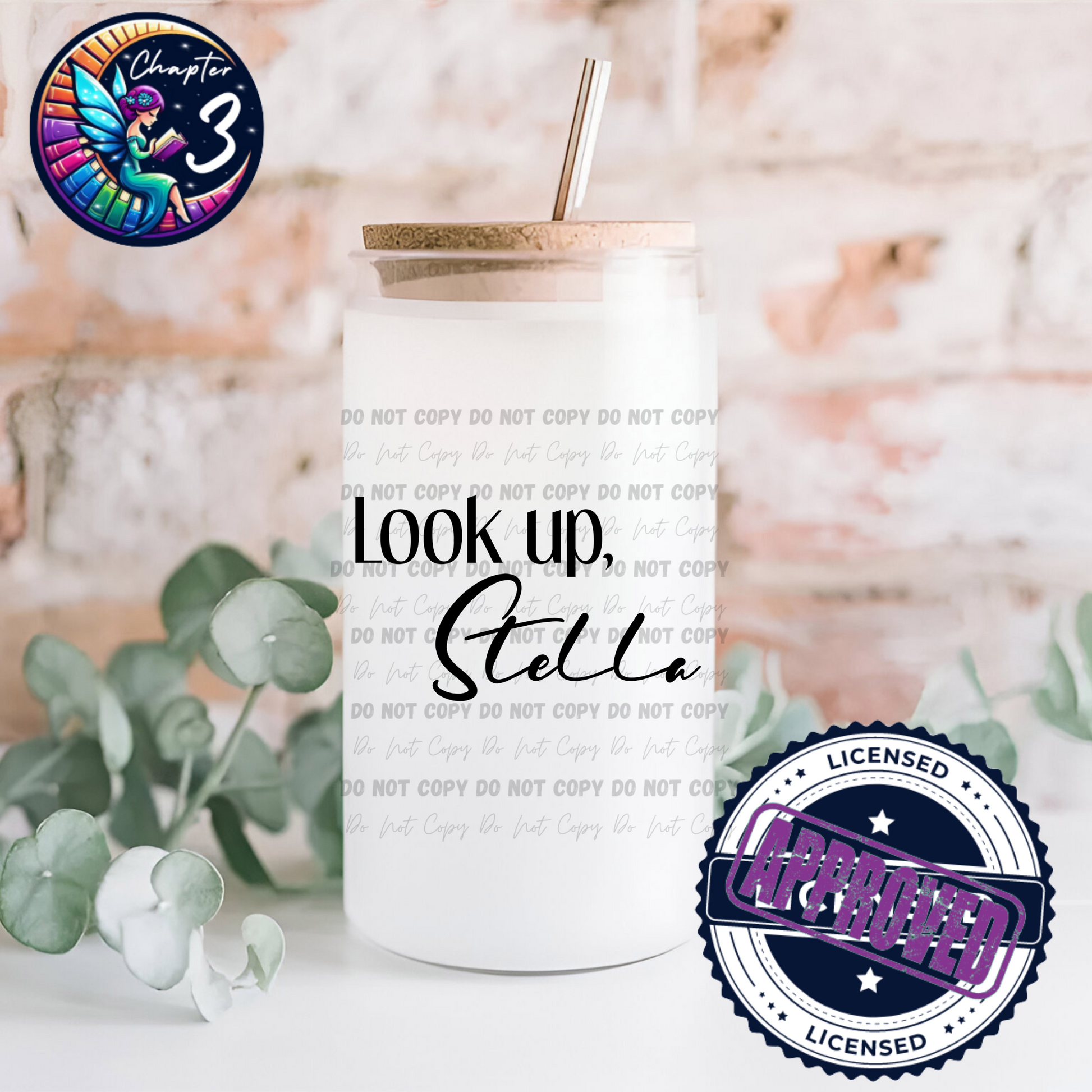 Don't miss a chance with Look Up, Stella Libbey Glass Can. This 16oz glass can is inspired by the book "Drive" by Kate Stewart and serves as a reminder to always look up- your future could be right in front of you. Trust your gut!