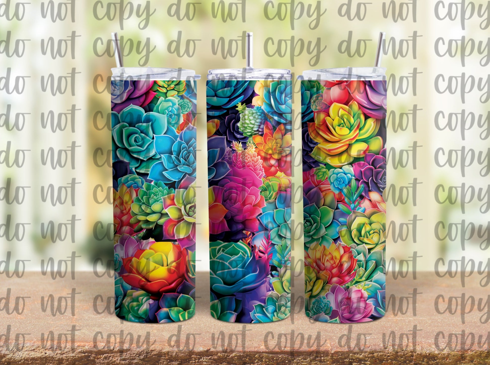 Rainbow Succulents Sublimation Tumbler
