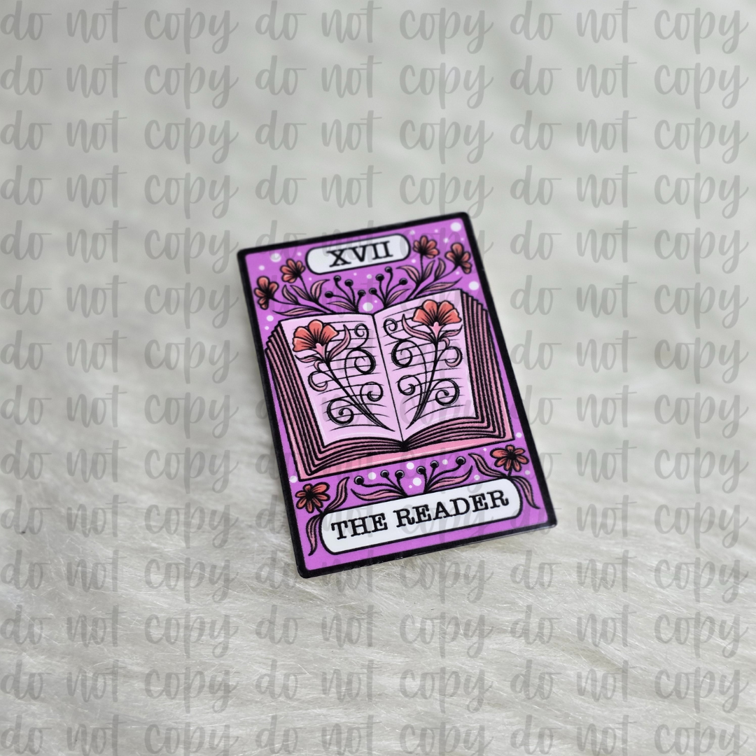 Introducing the Reader Tarot Card Sticker! This 2.5" sticker is perfect for all tarot enthusiasts, featuring a purple design. Add it to your laptop, water bottle, or journal for a fun and unique touch. Get ready to read the cards with this quirky sticker!