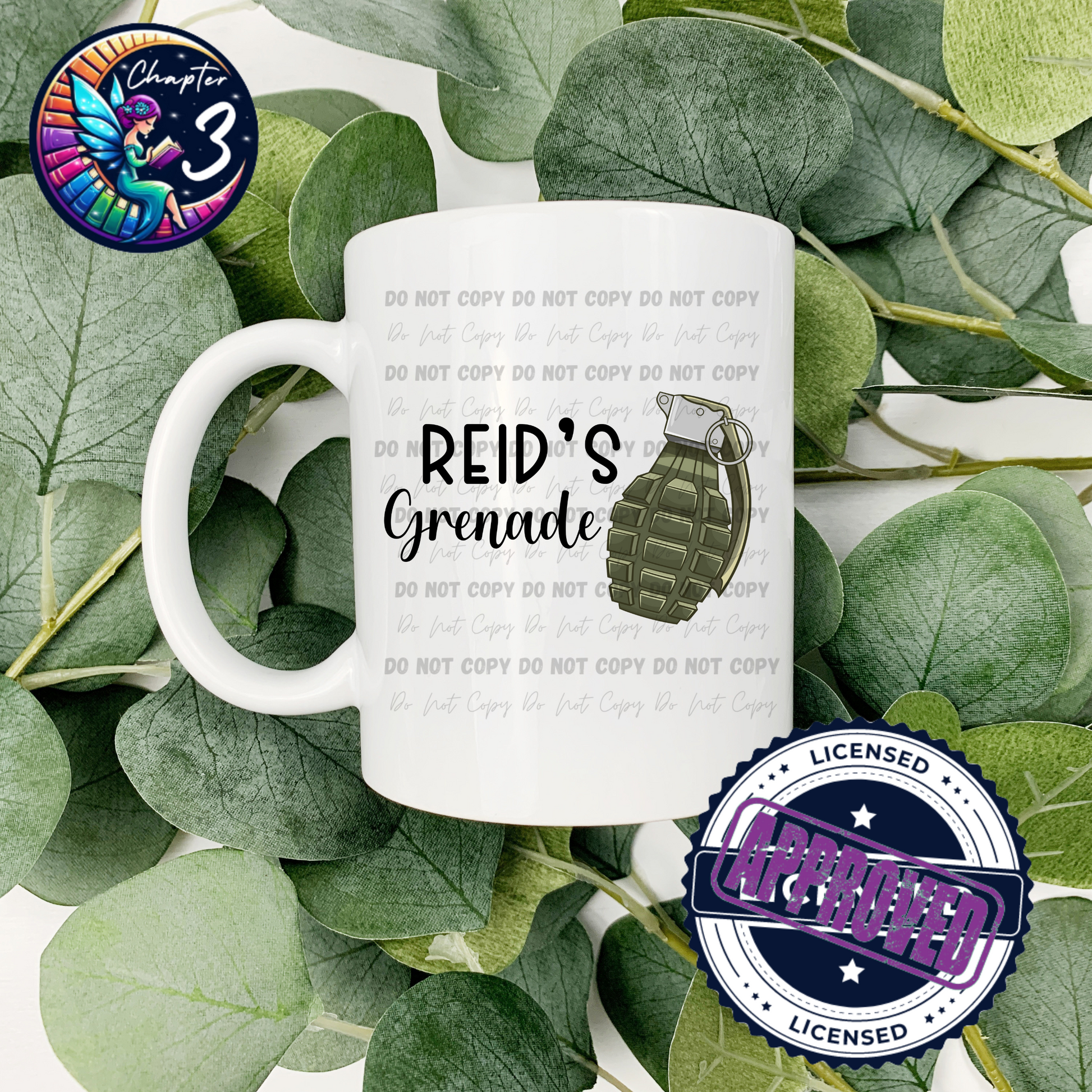 Quench your thirst for bookish adventure with Reid's Grenade 15oz Mug. Inspired by the fictional character 'Reid Crowne' in the novel 'Drive' by Kate Stewart, this mug is a quirky tribute to literary mischief. Fill it with your favorite beverage and get lost in a book! (Not responsible for jealous book boyfriends).