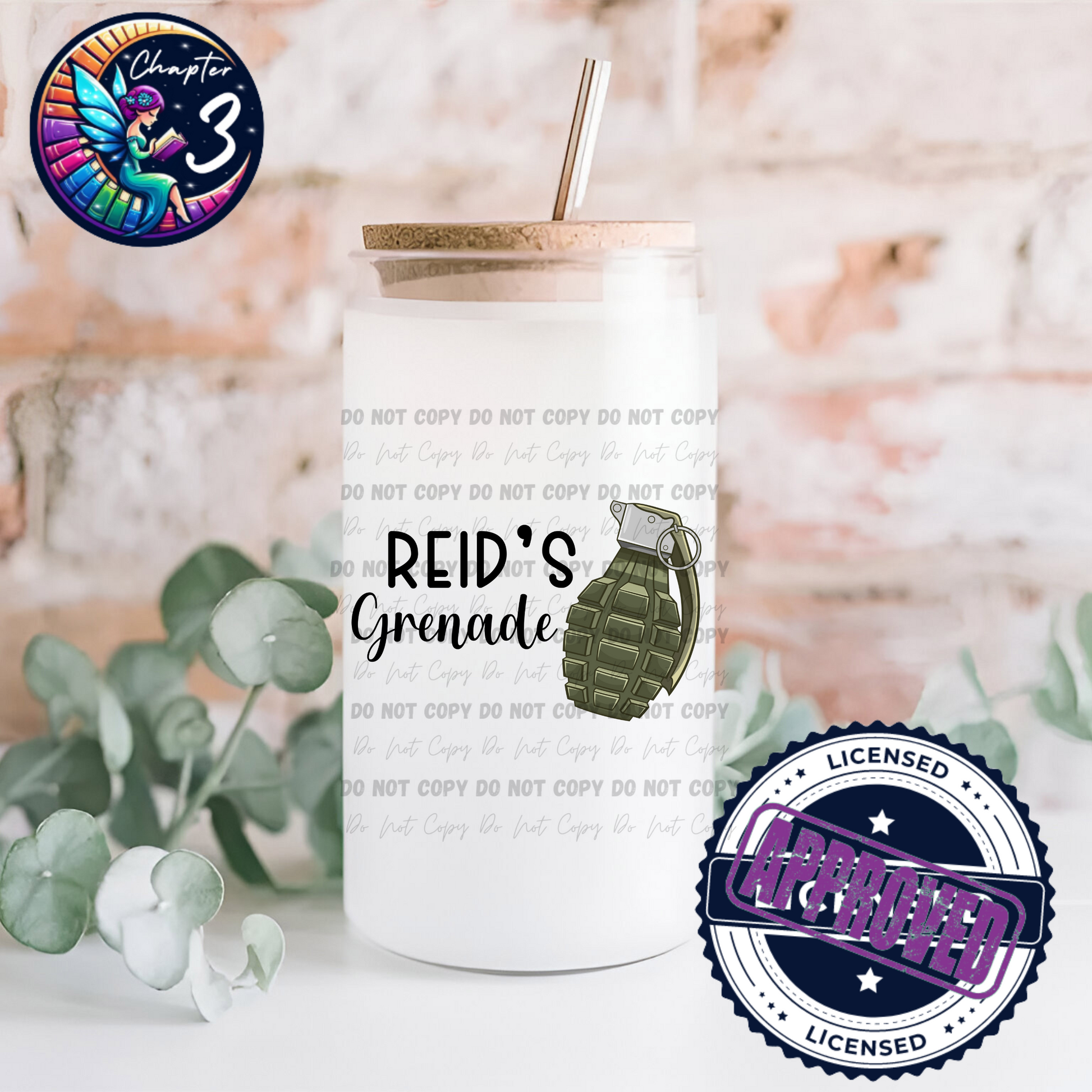 Introducing Reid's Grenade Libbey Glass Can - the must-have 16oz glass can inspired by Kate Stewart's book "Drive." Perfect for book lovers, this bookish cup is sure to add a touch of quirk and fun to your drinkware collection. Sip with style and show off your love for literature!