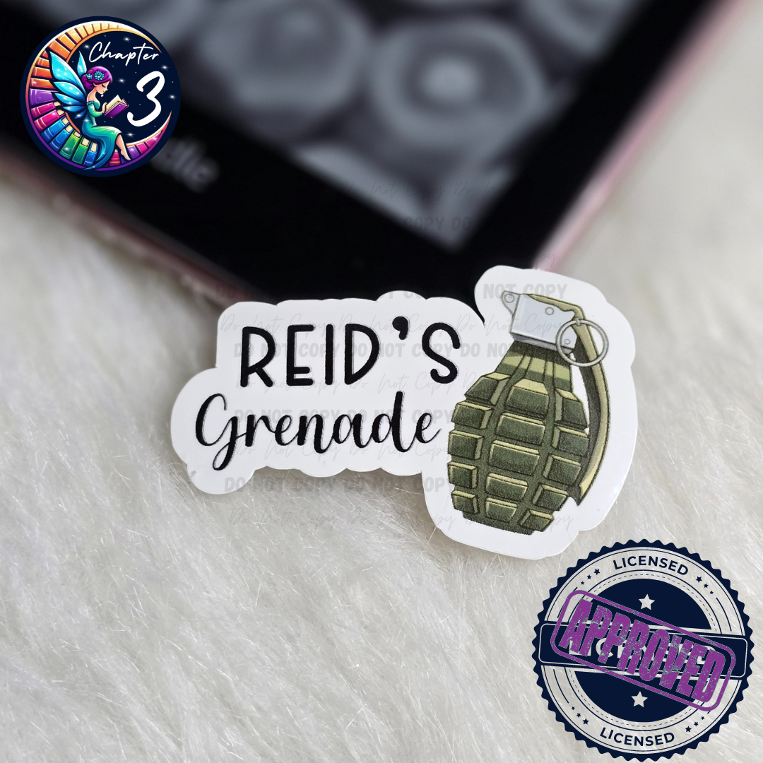 Add a pop of explosive personality to your books with Reid's Grenade Sticker! Measuring at 2.5", this bookish sticker is sure to make a statement. Perfect for adding some fun to your notebook, laptop, or any surface that needs a little flair. (Boom!)