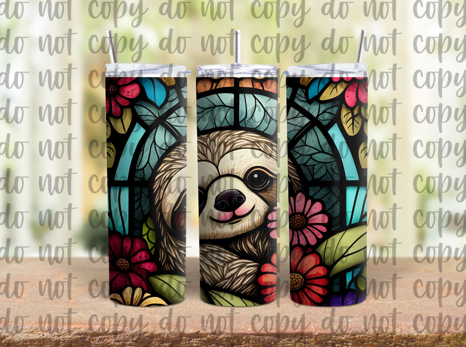 Stained Glass Sloth Sublimation Tumbler