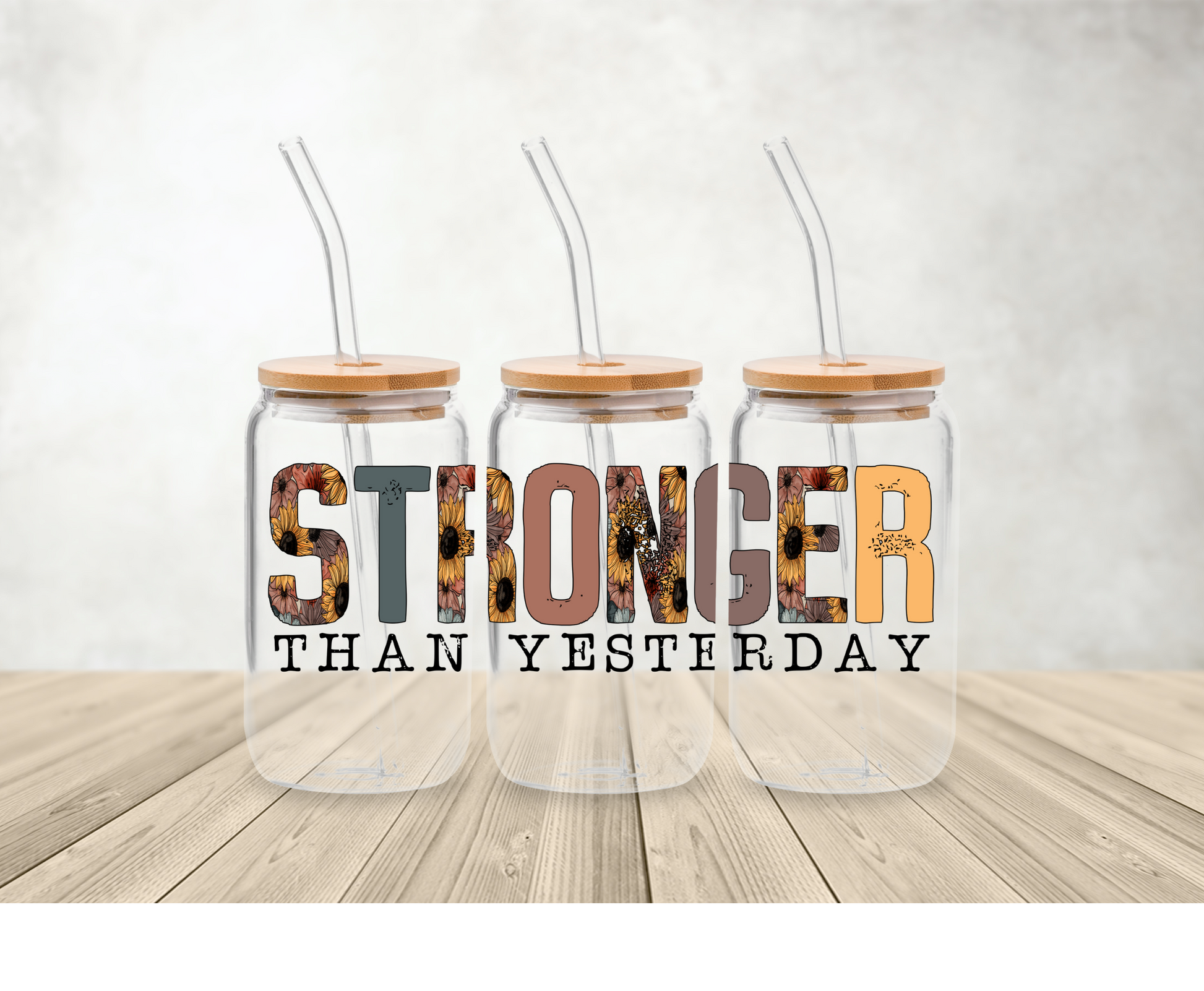 Sip your favorite beverage from this Stronger Than Yesterday Libbey Glass Can! This can is made from sturdy glass, so take it on an adventure - build your strength from “Yesterday” and enjoy life to the fullest. (It's also dishwasher safe, so no need to worry about washing up!)