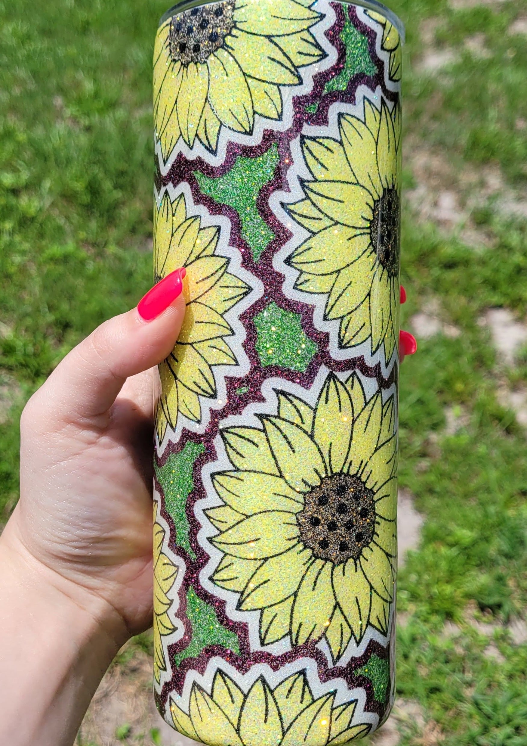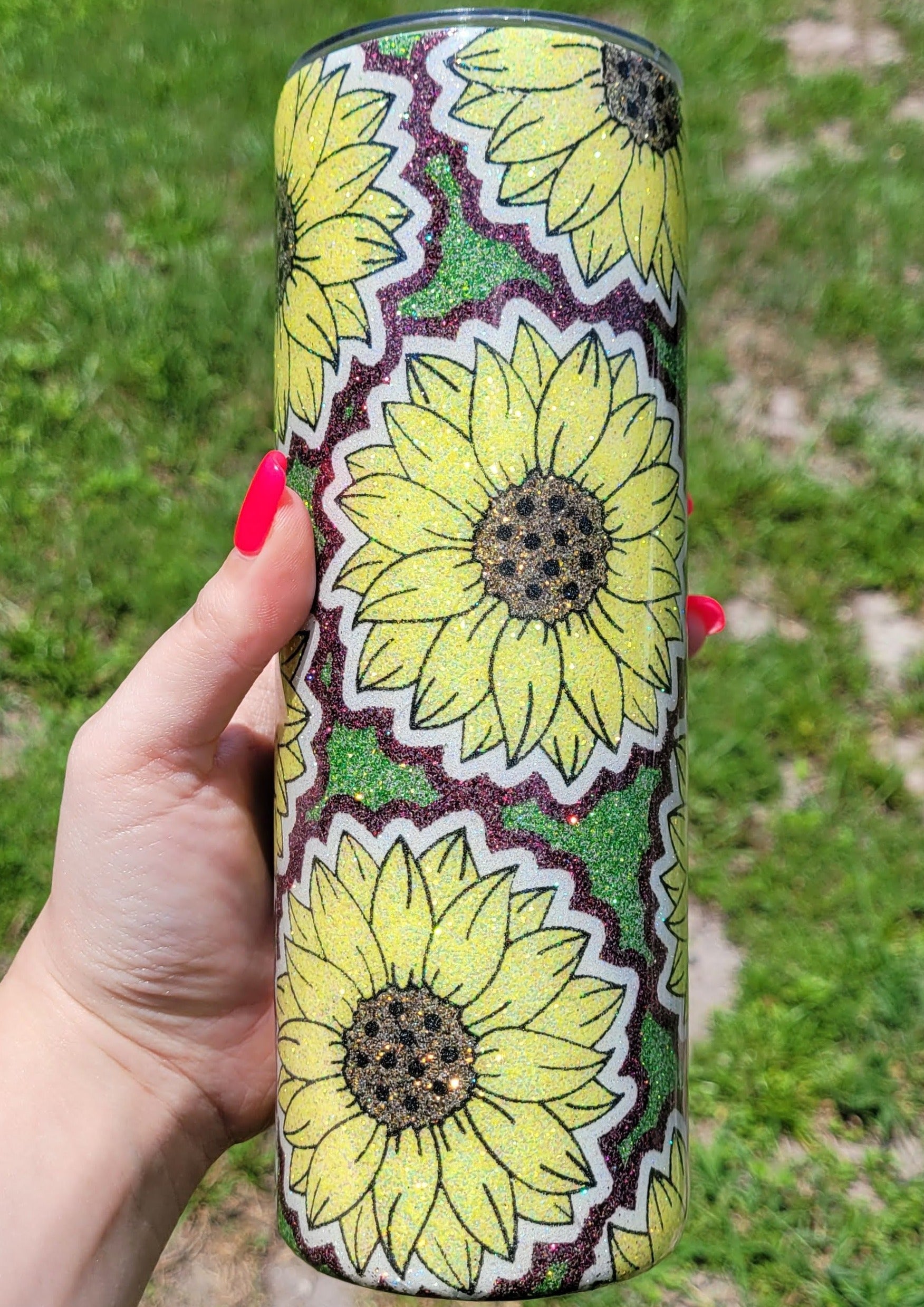 Sunflower Glitter Burst Stainless Steel Tumbler