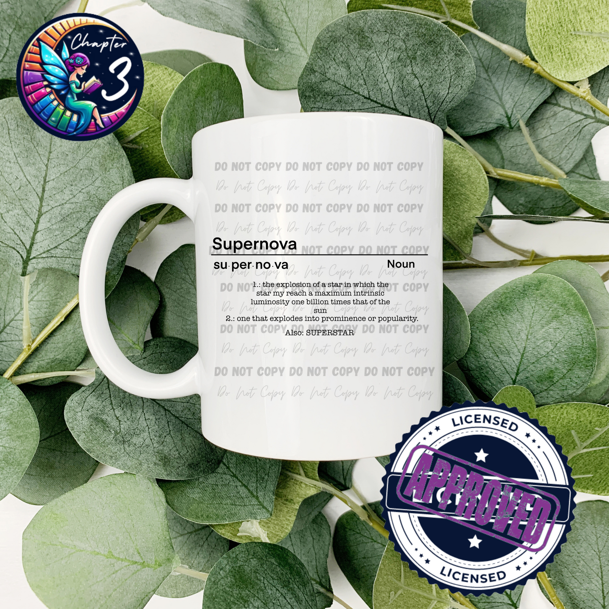 Get ready to start your day with a bang! Our Supernova Definition Mug is perfect for book lovers, inspired by "Reverse" by Kate Stewart. This 15oz mug is the perfect size for your favorite hot beverage, making it a must-have for your bookish collection. Cheers to a stella(r) start to your day!