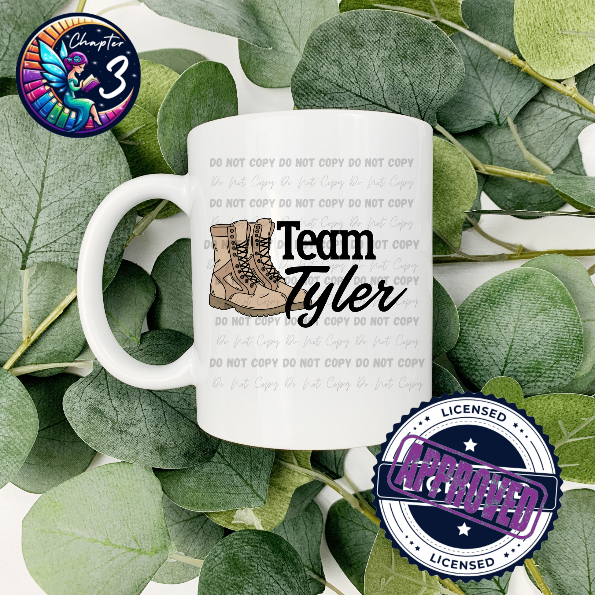Start your day off in a playful way with our Team Tyler 15oz Mug. Sip your favorite beverage while showing off your bookish side with a design inspired by "The Ravenhood" series from the talented Kate Stewart. A must-have for any die-hard fan!