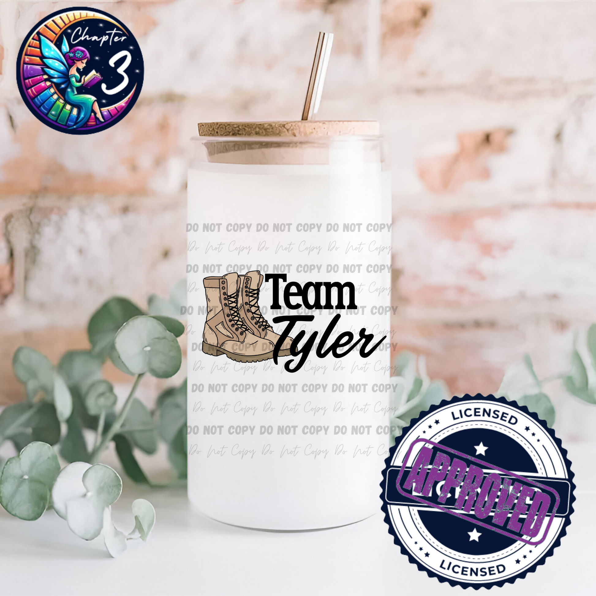 Get ready to cheer on your favorite team with the Team Tyler Libbey Glass Can! This bookish glass is inspired by Kate Stewart's series "The Ravenhood" and is perfect for any fictional man-loving bookworm. Show off your fandom in a unique and quirky way with this one-of-a-kind glass can. (Go team Tyler!)