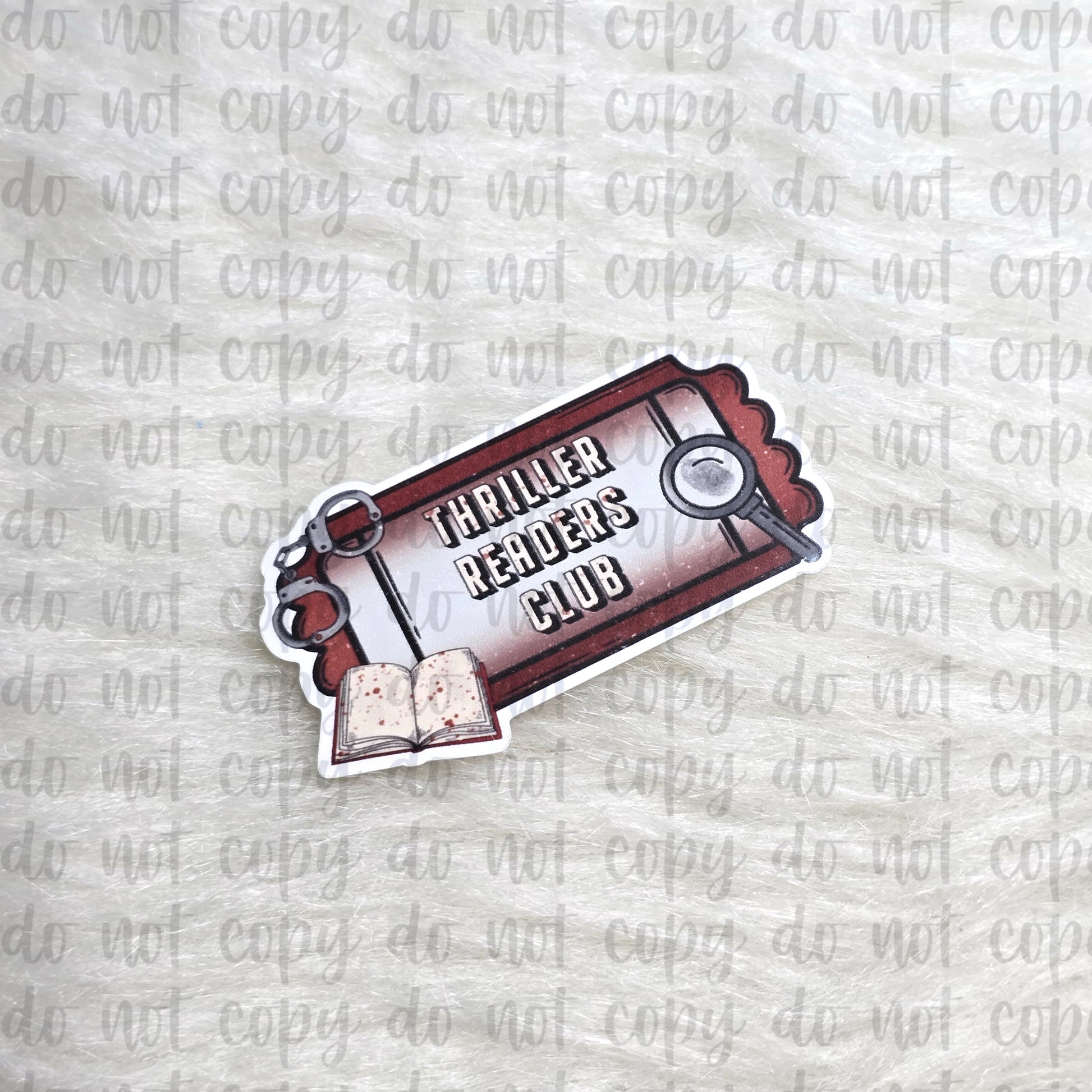 Join the club with our Thriller Readers Club sticker! At 2.5" wide, it's the perfect size to show off your love for all things suspenseful. Stick it on your laptop, water bottle, or notebook for a quirky and fun addition to your collection.