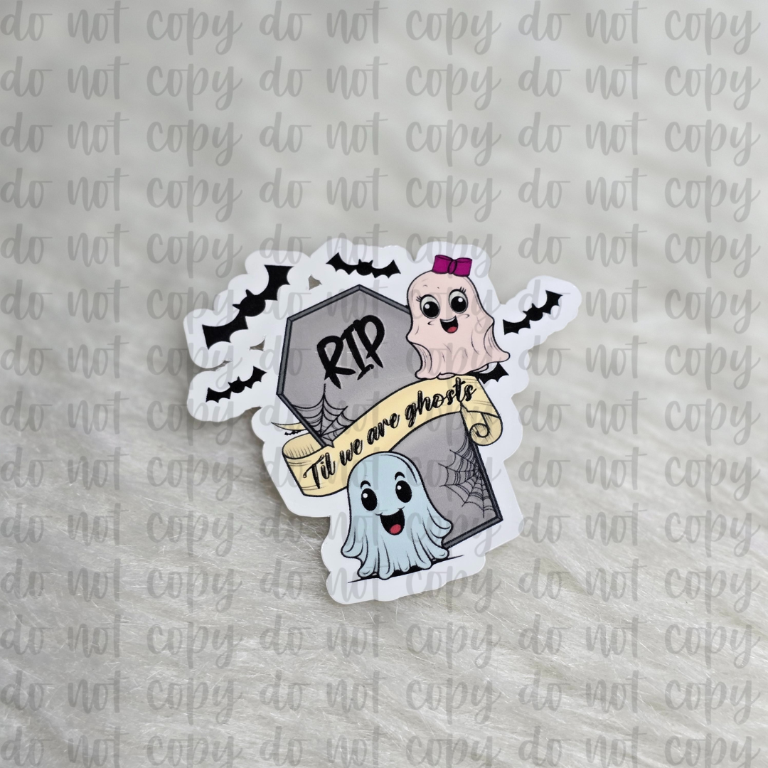Add a playful touch to your belongings with the Till We Are Ghosts Sticker! Measuring at 2.5" at its widest point, this sticker is the perfect size for laptops, water bottles, and more. Show off your love for the saying "till we are ghosts" and add a fun element to your everyday items.