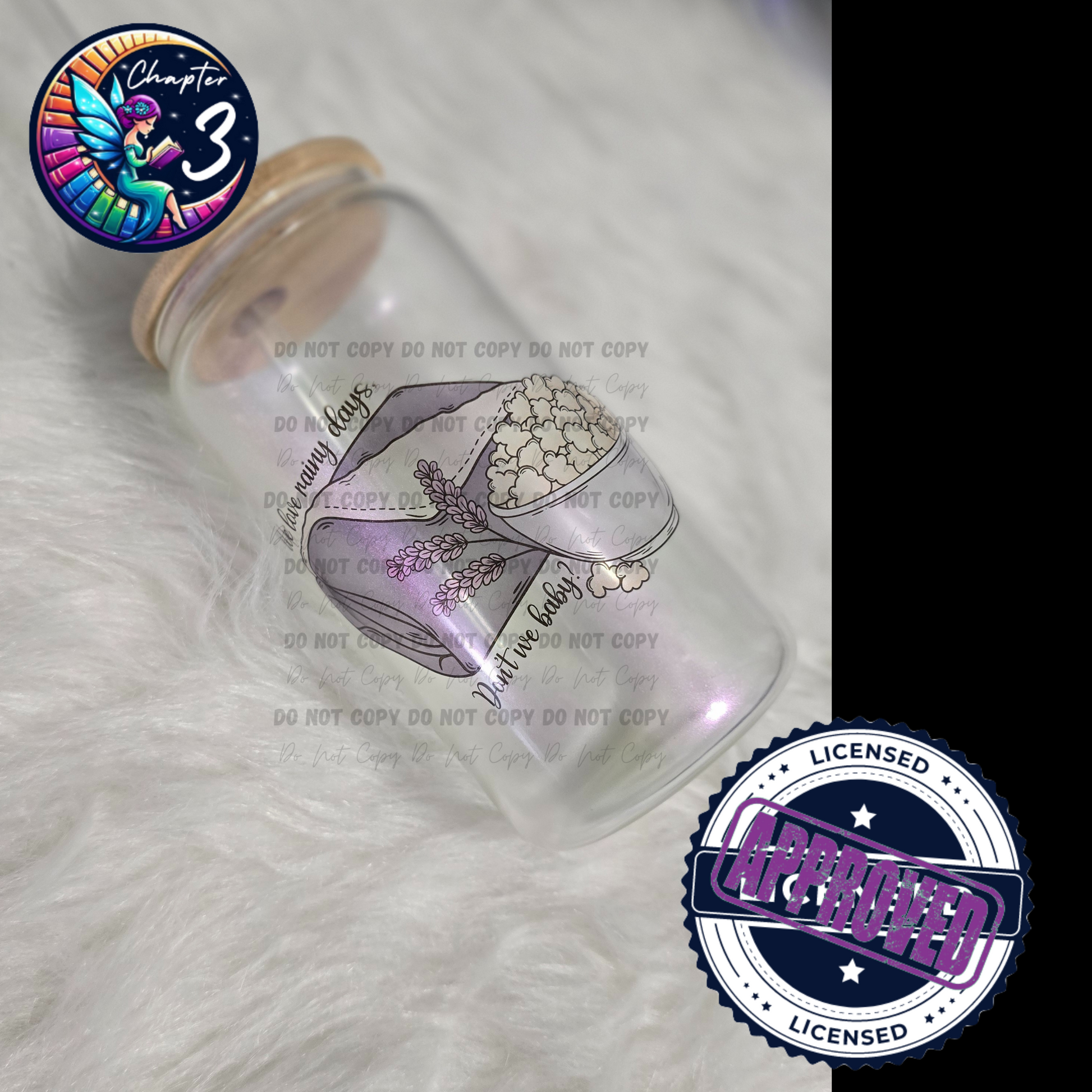 Embrace those rainy days with our sentimental 16oz Libbey glass can featuring the heartbreaking phrase 'We love rainy days, don't we baby?' Perfect for book lovers and anyone who enjoys a cozy day indoors or Dominic King. Get your hands on this bookish glass can today! **Shimmer glass shown in photo