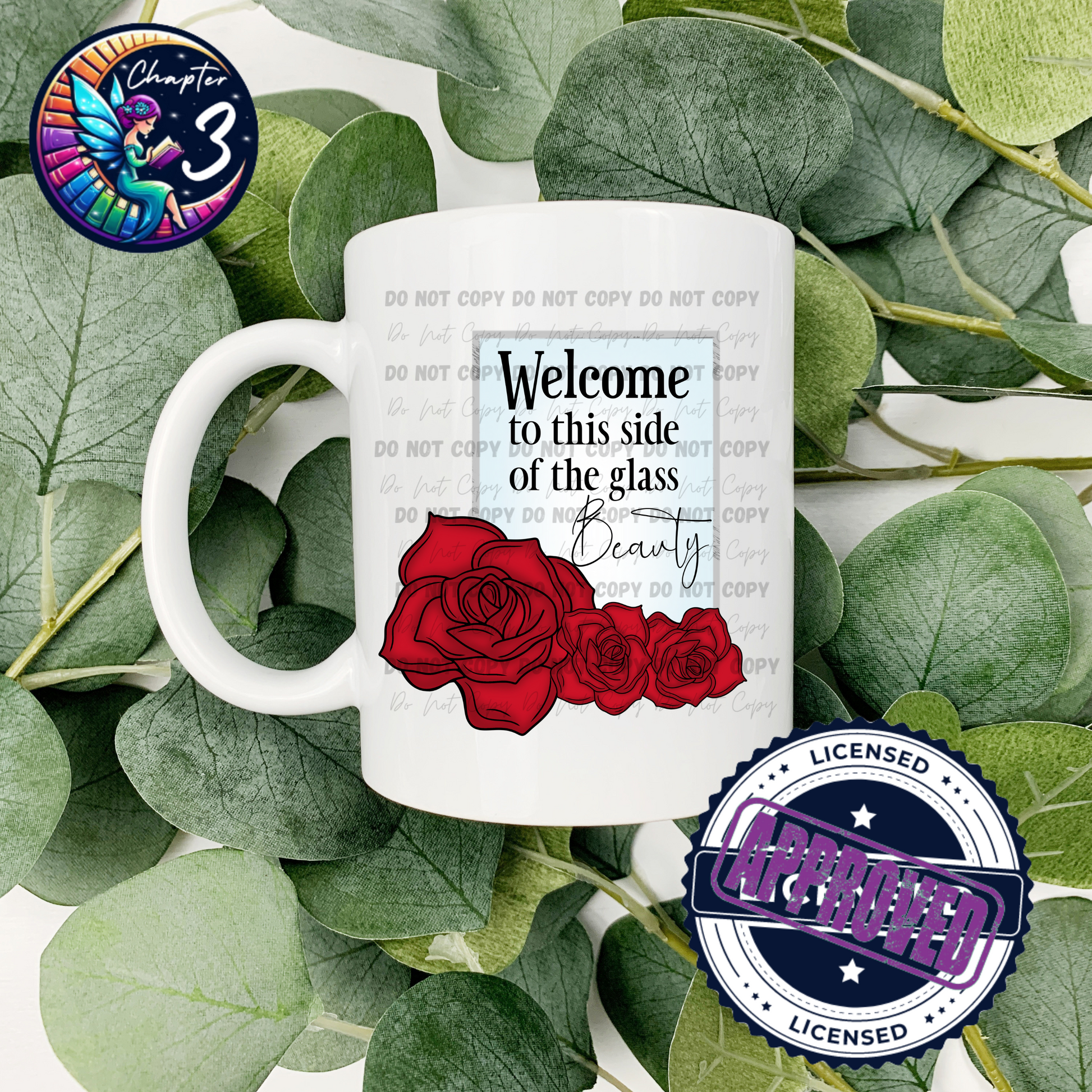 Embrace your inner bookworm with the Welcome to This Side of the Glass Beauty Mug. Inspired by Kate Stewart's novel "Reverse", this 15oz mug features a sentimental and beautiful bookish quote by Easton Crowne. Perfect for your daily dose of caffeine and literary inspiration. Cheers!